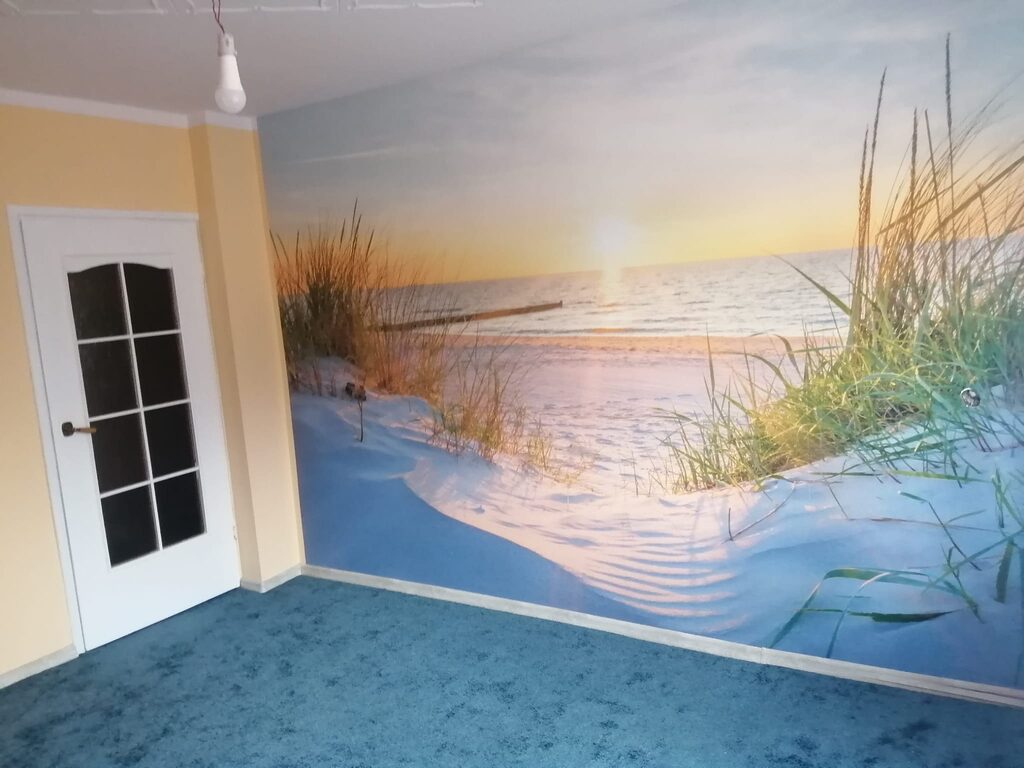 O papel de parede tem muito bom aspeto. Foi feito por um profissional. Demora cerca de 3 dias para que tudo assente. No início, pensámos que o papel de parede tinha bolhas. Entrega super rápida… nada de que se queixar.