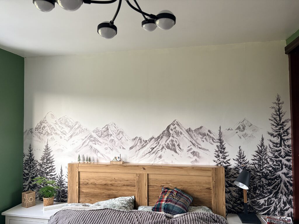 Usei um rolo de pintura para espalhar uniformemente a cola para papel de parede e comprei uma cola pronta de alta qualidade.