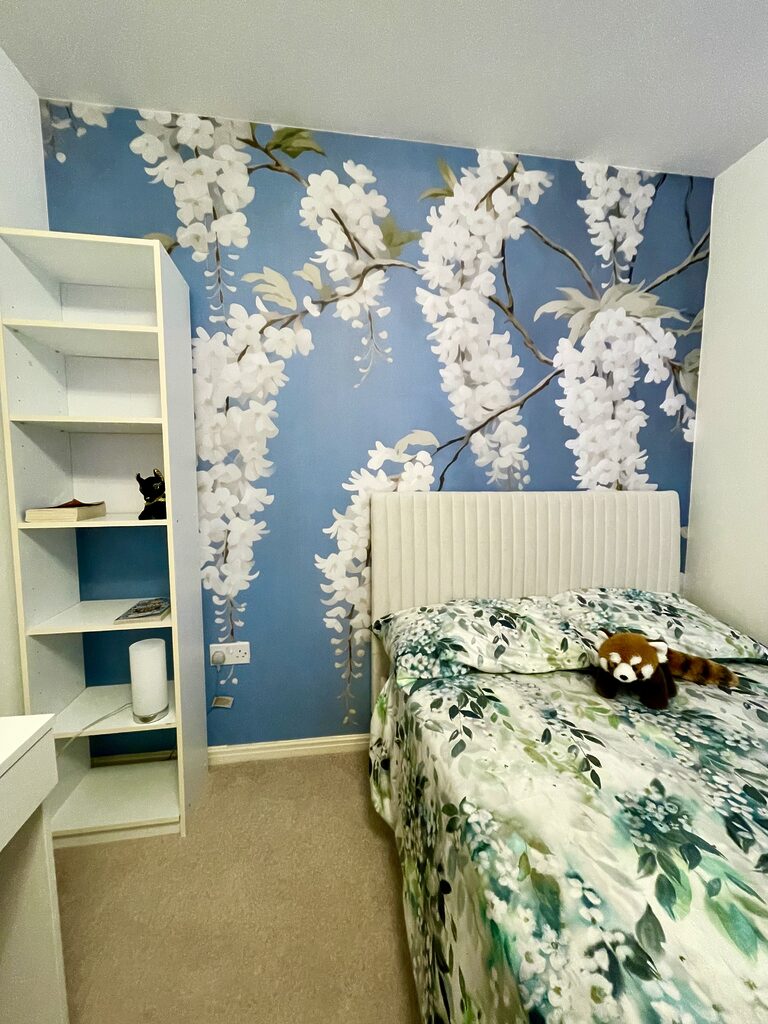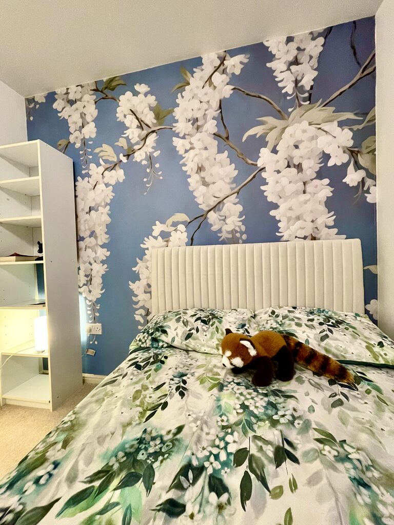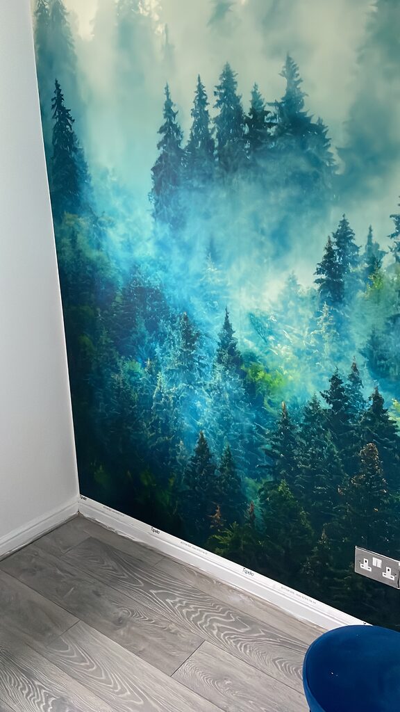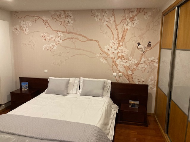 O mural é muito bonito, embora haja algumas zonas que não encaixam na perfeição… Colocá-lo não foi muito complicado, embora seja verdade que é preciso ter muito cuidado para não o manchar com a cola, porque não se limpa facilmente. Também é verdade que a tinta do próprio desenho transfere-se ao passar a mão continuamente para o alisar.