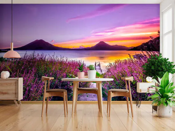 Papel de parede Papel de parede Caminho que conduz a um lago com flores roxas (REF: u10759)