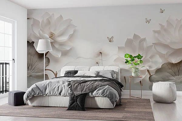 14.60 €8.76 €Papel de parede Flores e borboletas de papel branco sobre uma superfície branca