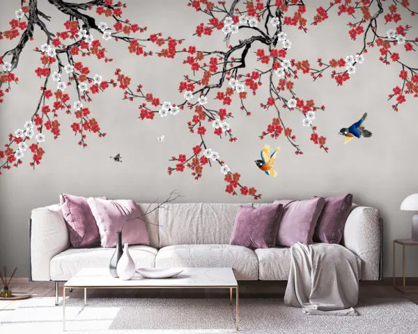 14.60 €8.76 €Papel de parede Árvore com flores vermelhas e brancas