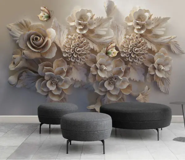 14.60 €8.76 €Papel de parede Grupo de flores brancas e borboletas