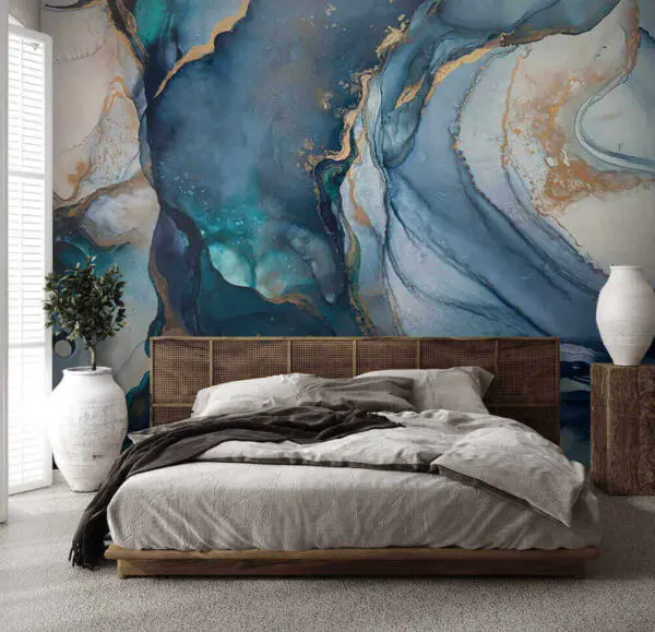 14.60 €8.76 €Papel de parede Tons rodopiantes de azul-petróleo e cobre