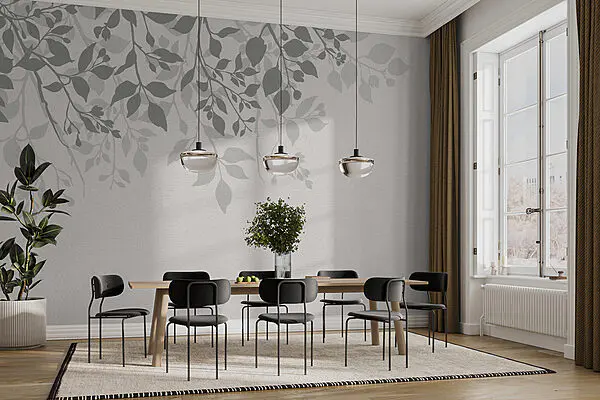 14.38 €7.91 €Papel de parede Fundo cinzento e branco com folhas