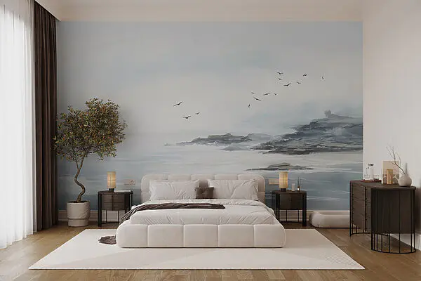 Papel de parede Papel de parede Pintura de árvores no nevoeiro (REF: w02459)