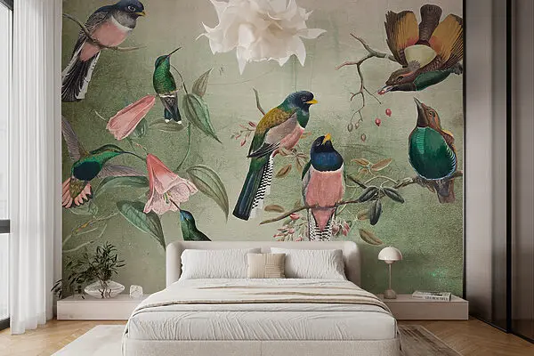 13.87 €8.33 €Papel de parede Um papel de parede com pássaros e flores