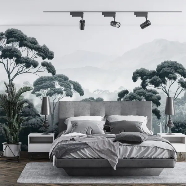 13.87 €8.33 €Papel de parede Floresta enevoada com árvores e plantas