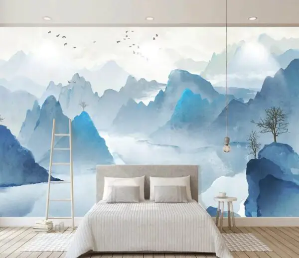 Papel de parede Papel de parede Pintura a aguarela de montanhas e pássaros (REF: u32523)