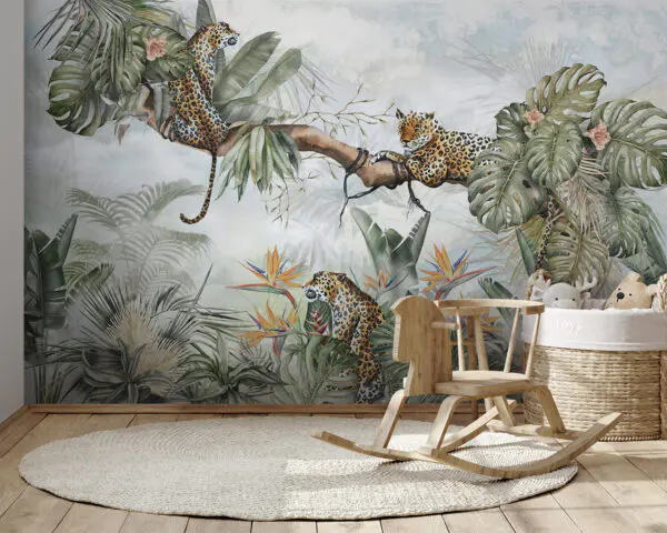 14.38 €7.91 €Papel de parede Pintura de um grupo de chitas num ramo de árvore