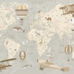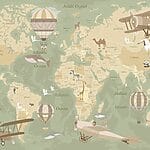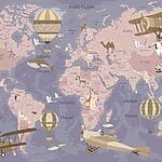 Papel de parede Um mapa do mundo com aviões e balões de ar quente