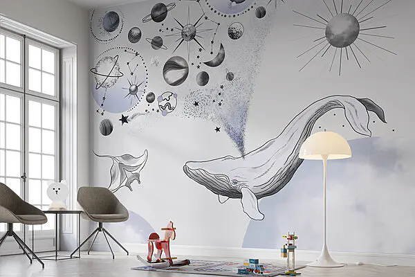 • Promoção -45% Papel de parede Papel de parede Uma baleia e os planetas (REF: w00868)