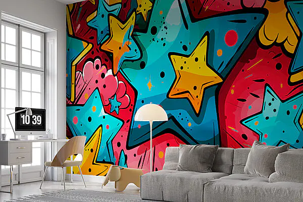 Papel de parede Papel de parede Padrão de estrelas coloridas (REF: w01063)