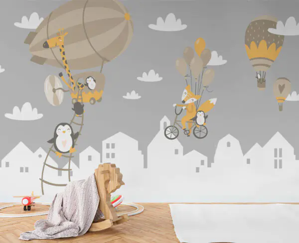13.86 €8.31 €Papel de parede Animais dos desenhos animados a voar com balões
