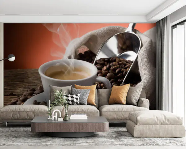 14.60 €8.76 €Papel de parede Chávena de café com vapor e grãos de café