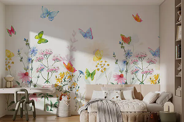 Papel de parede Papel de parede Pintura de flores e borboletas (REF: w02238)