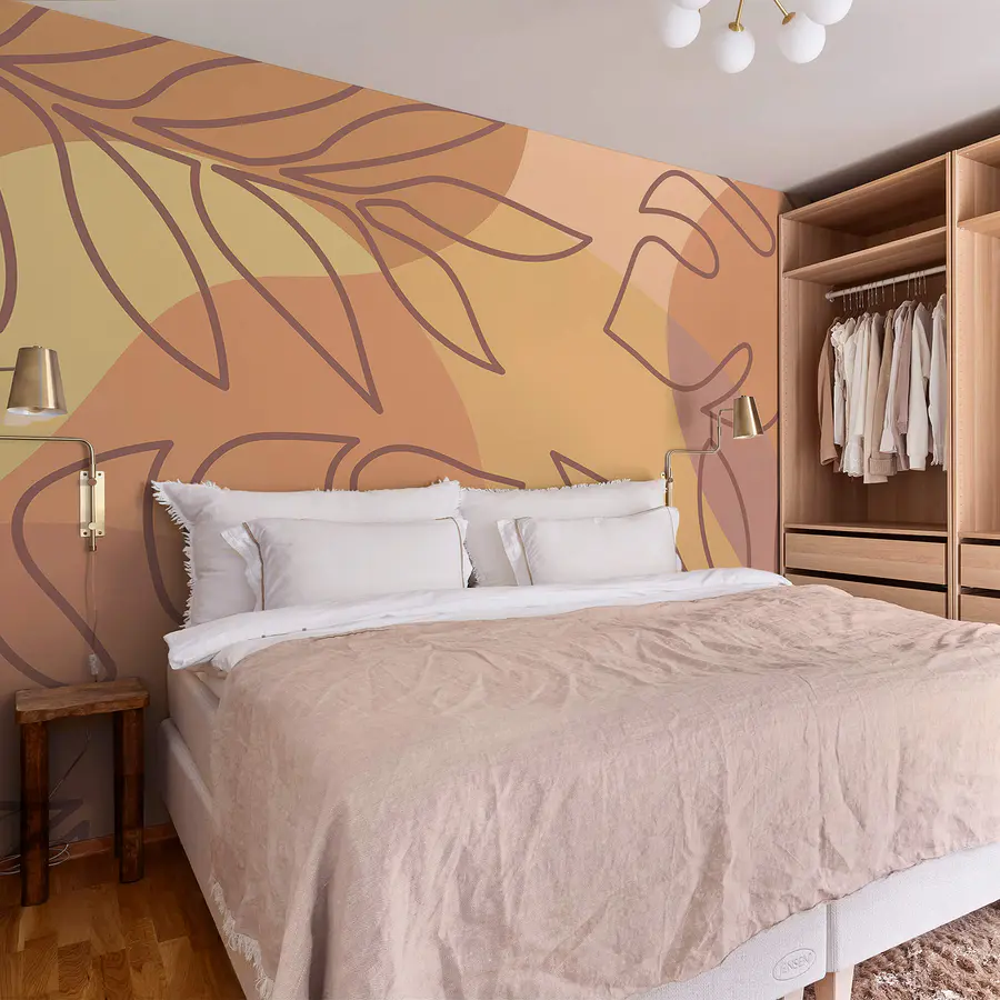 Papel de parede Padrão de folhas num fundo colorido