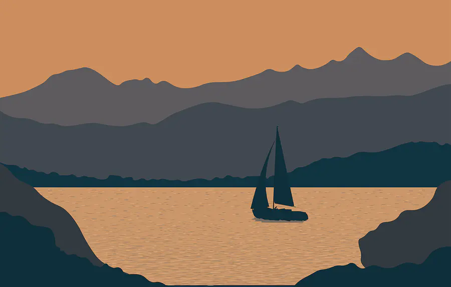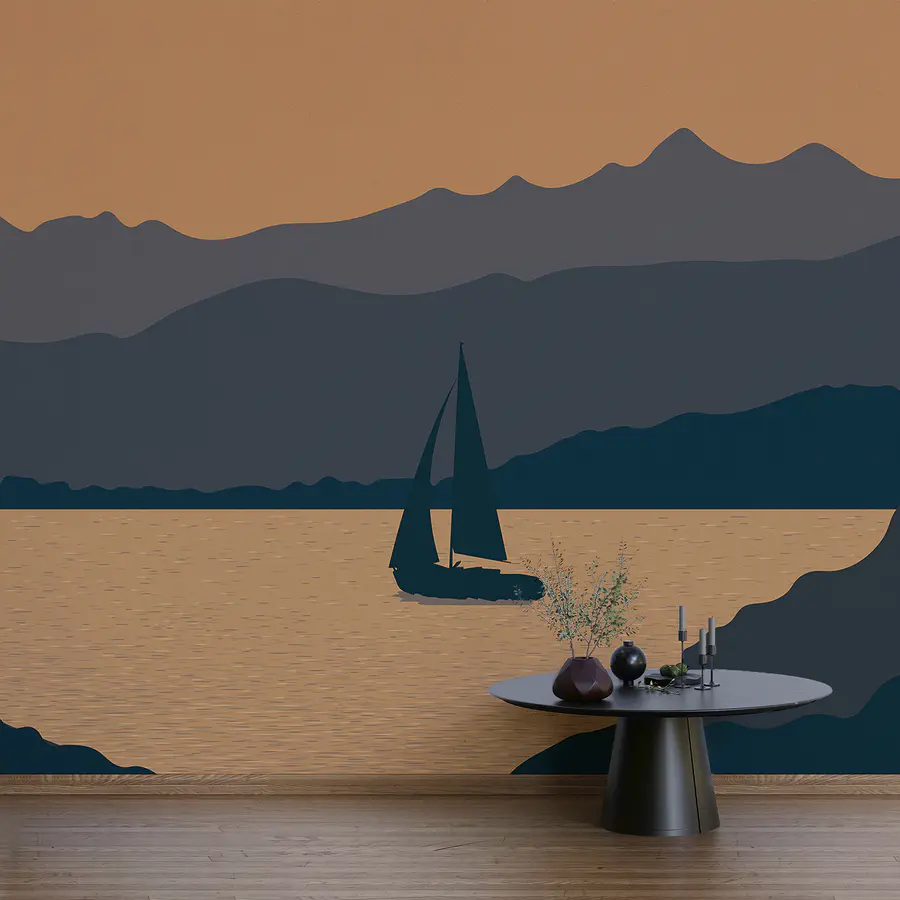Papel de parede Barco à vela na água com montanhas ao fundo
