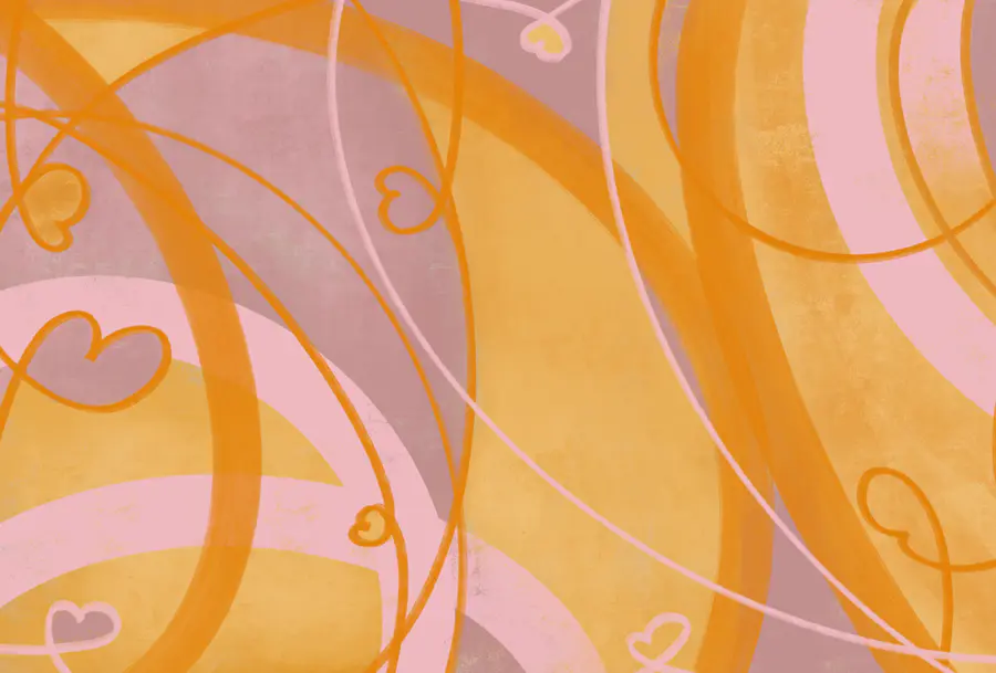 Papel de parede Redemoinhos e corações amarelos e cor-de-rosa