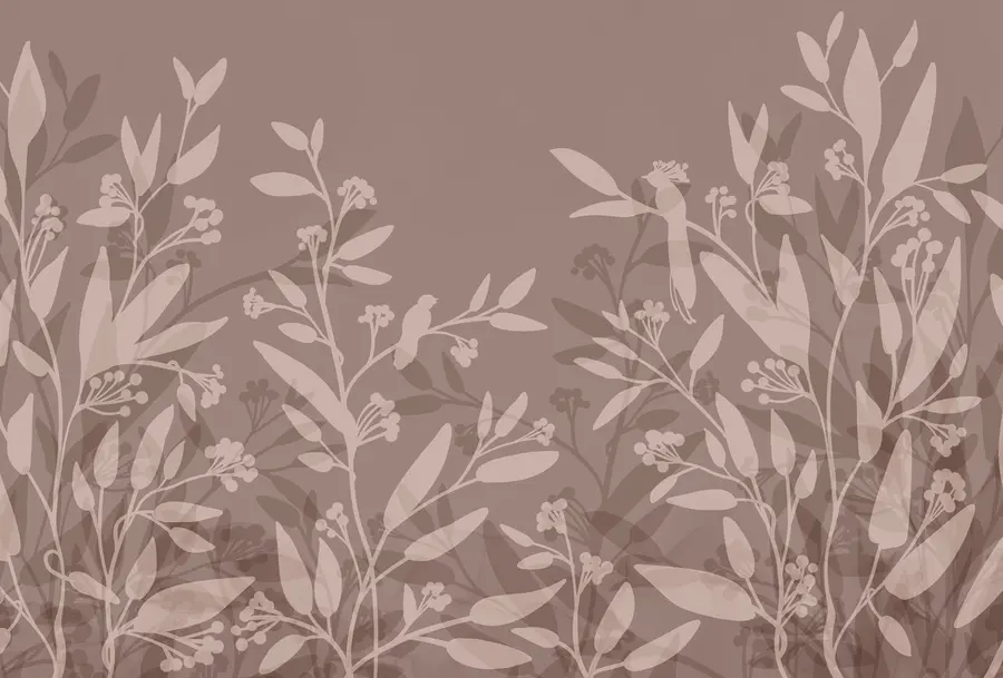 Papel de parede Silhuetas de folhas suaves num fundo discreto