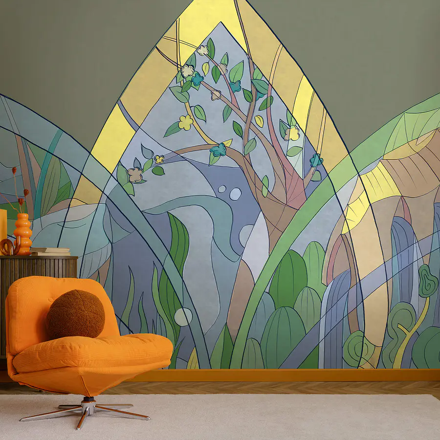 Papel de parede Arte colorida de árvores e plantas