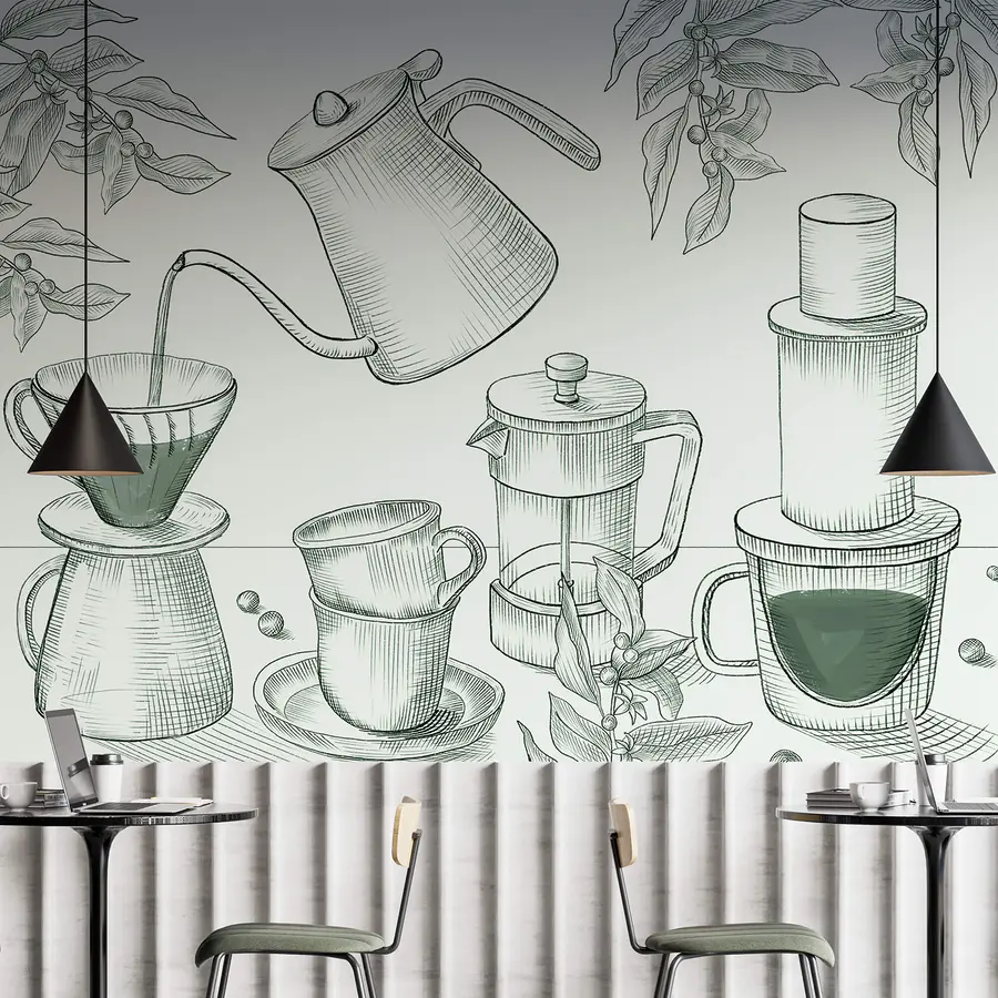15.12 €8.31 €Papel de parede Desenho do processo de preparação do café