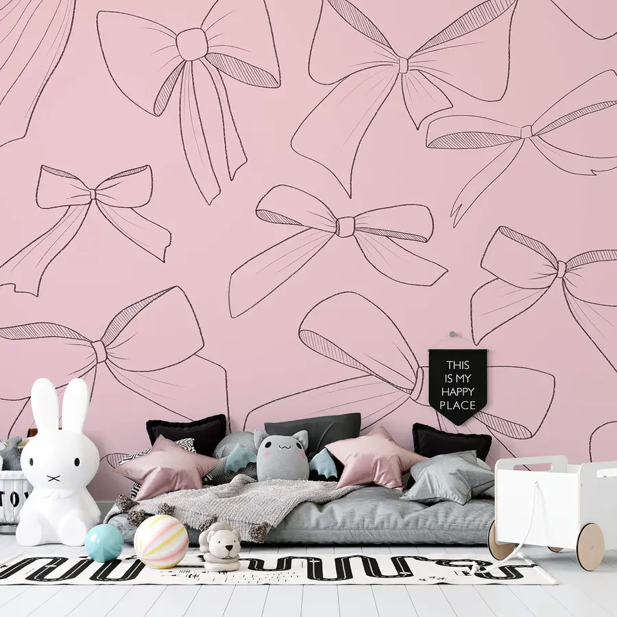 Papel de parede Padrão de laços sobre um fundo cor-de-rosa