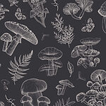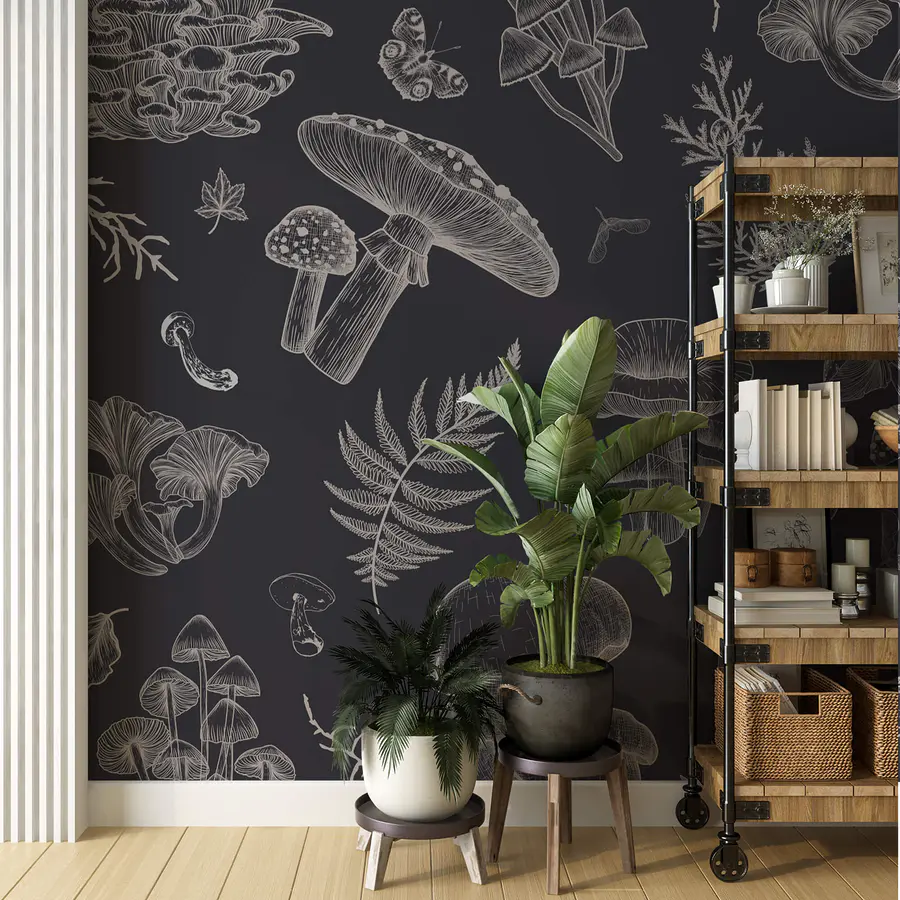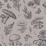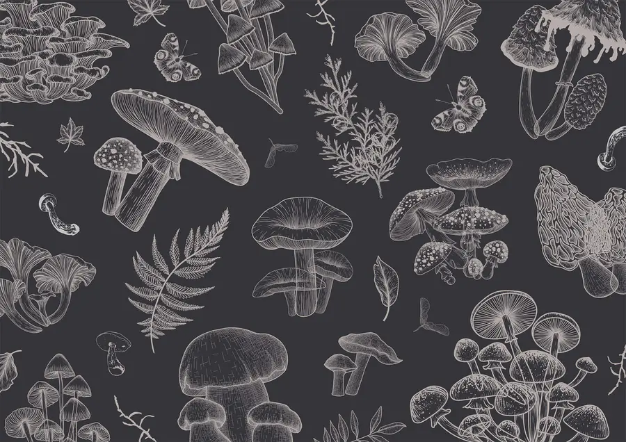 Papel de parede Padrão de cogumelos e folhas