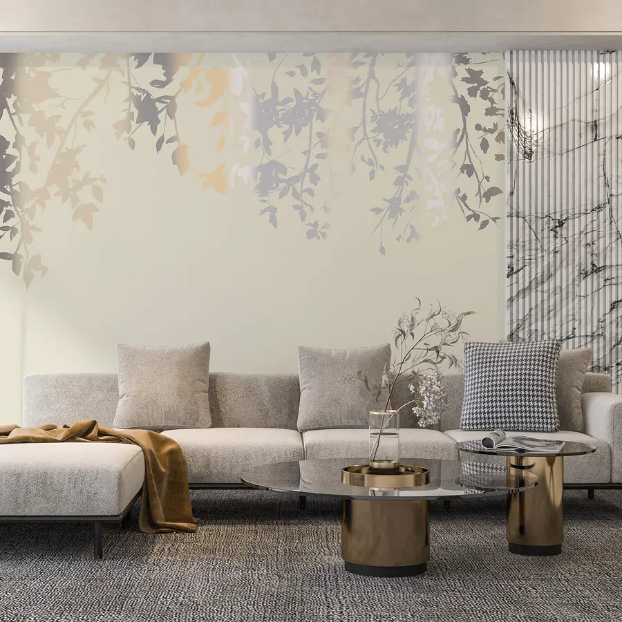15.12 €8.31 €Papel de parede Folhas delicadas sobre um fundo suave
