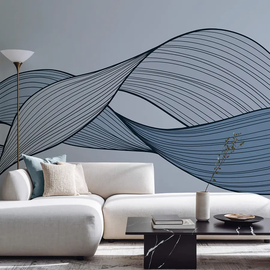 Papel de parede Linhas onduladas azuis e pretas