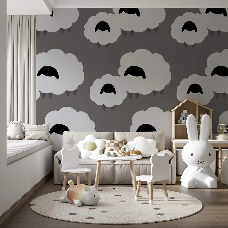 Papel de parede Grupo de nuvens brancas com ovelhas pretas