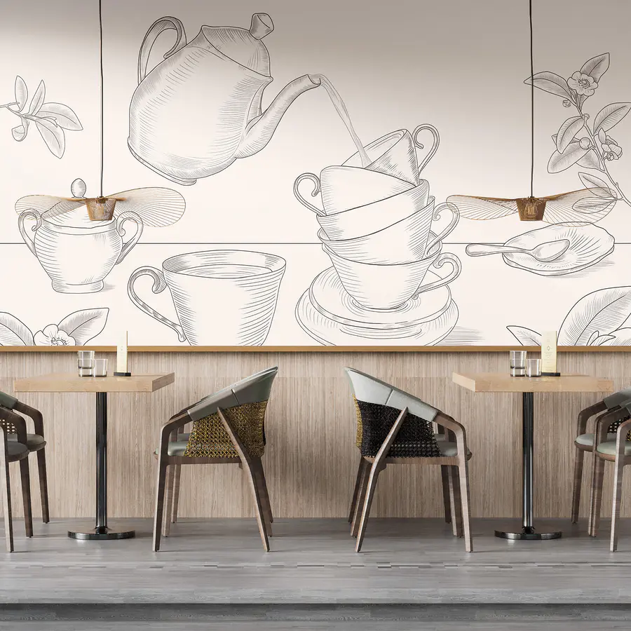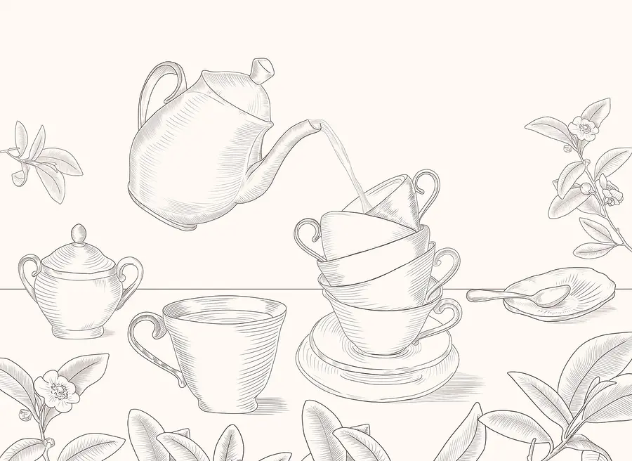 Papel de parede Bule servindo chá em uma pilha de xícaras