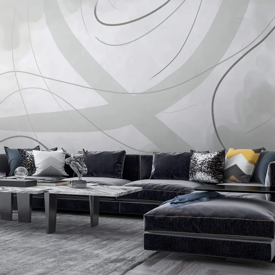 Papel de parede Fundo branco e cinza com linhas e curvas