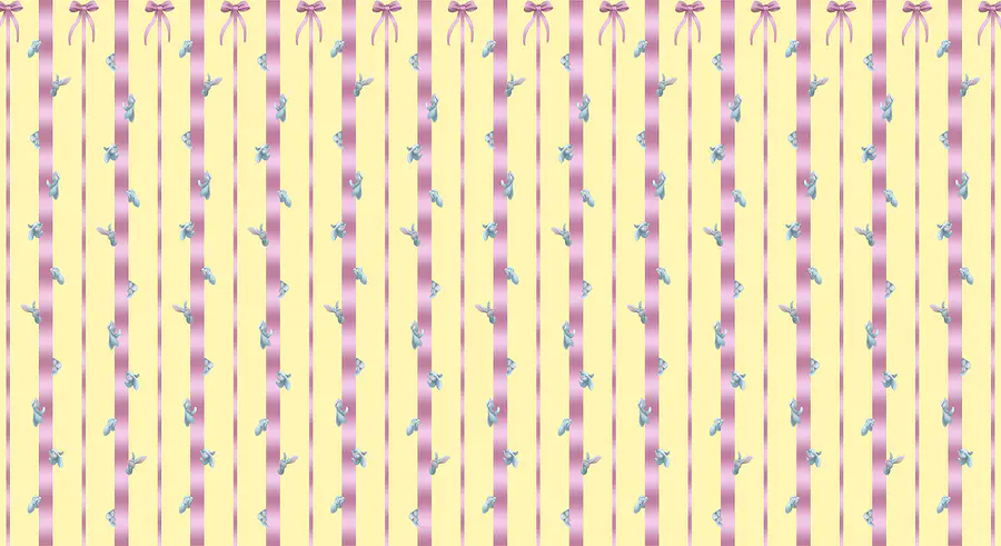 Papel de parede Fundo listrado rosa e amarelo com pássaros e laços