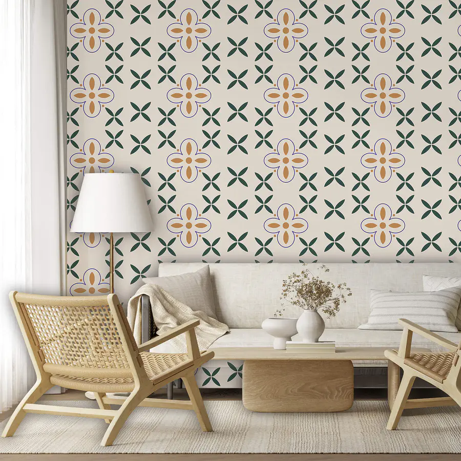 Papel de parede Padrão de flores sobre fundo branco