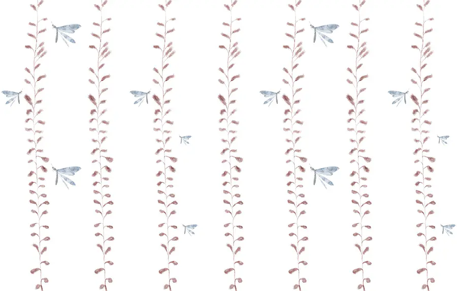 Papel de parede Papel de parede com libélulas e folhas