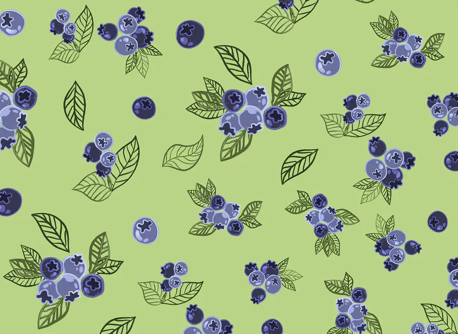 Papel de parede Padrão de mirtilos e folhas