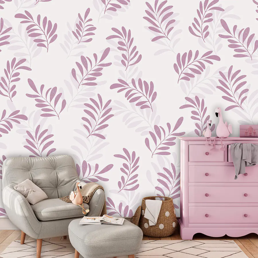 Papel de parede Padrão de folhas roxas