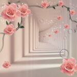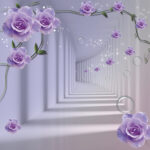 Papel de parede Papel de parede com rosas púrpura e uma escadaria
