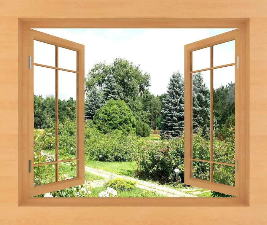 13.86 €8.31 €Papel de parede Janela com portas abertas e um caminho através de um campo relvado