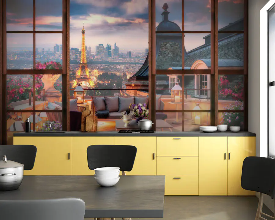 15.12 €8.31 €Papel de parede Vista de uma varanda com vista para a torre eiffel a partir da janela