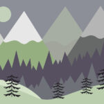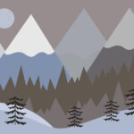 Papel de parede Paisagem de montanha com árvores e montanhas