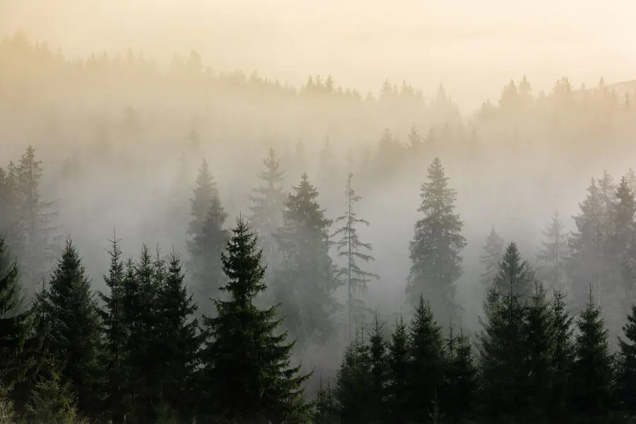 13.86 €8.31 €Papel de parede Floresta com nevoeiro e montanhas