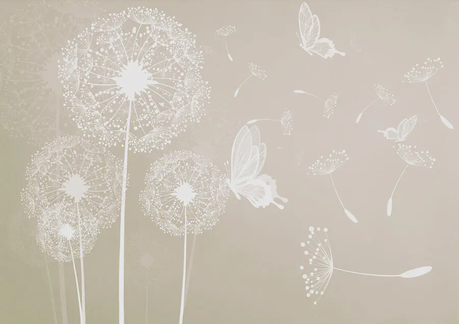 Papel de parede Um dente-de-leão branco com borboletas a voar