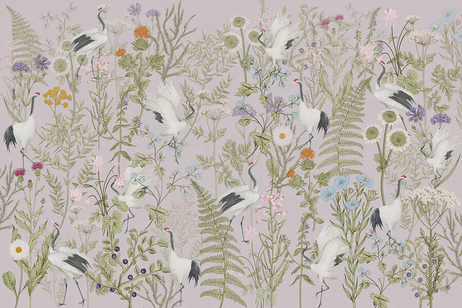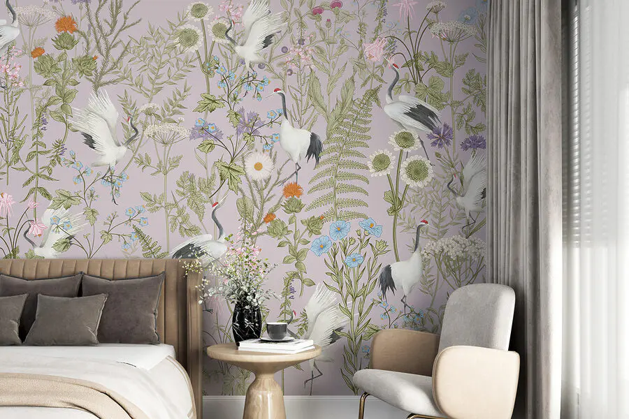Papel de parede Um papel de parede com pássaros e plantas
