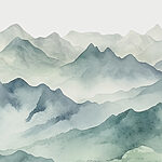 Papel de parede Uma aguarela de montanhas e nevoeiro