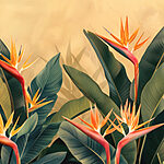 14.60 €8.76 €Papel de parede Folhas tropicais coloridas e pássaros