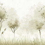 Papel de parede Paisagem de nevoeiro com árvores e relva