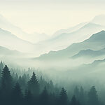 14.60 €8.76 €Papel de parede Paisagem de montanhas com árvores e nevoeiro