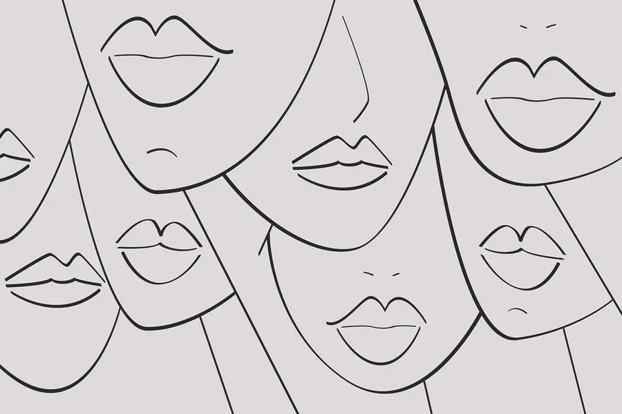 Papel de parede Grupo de rostos com lábios e lábios desenhados a preto e branco